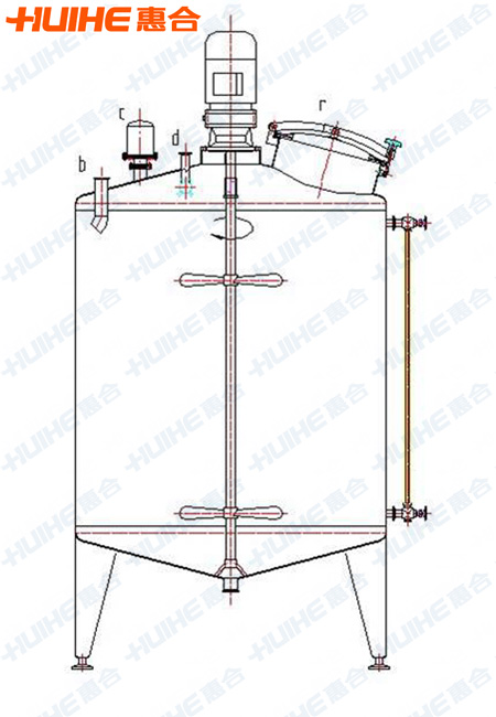 結(jié)構(gòu):由內(nèi)膽、夾套、保溫層、外包皮、減速器、攪拌槳、溫度計等組成。